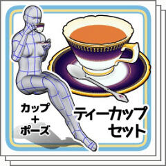 "The 3D Object model of the tea cup saucer spoon and match it. It is a set of two (sexes) pose material pose of tea drinking.