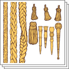 "A collection of brushes in a gothic style used for dresses, skirts, or other accessories!"