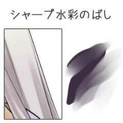Translation summary of the artists comment: this brush can be used for lines, watercolor, and thick paint all in one.